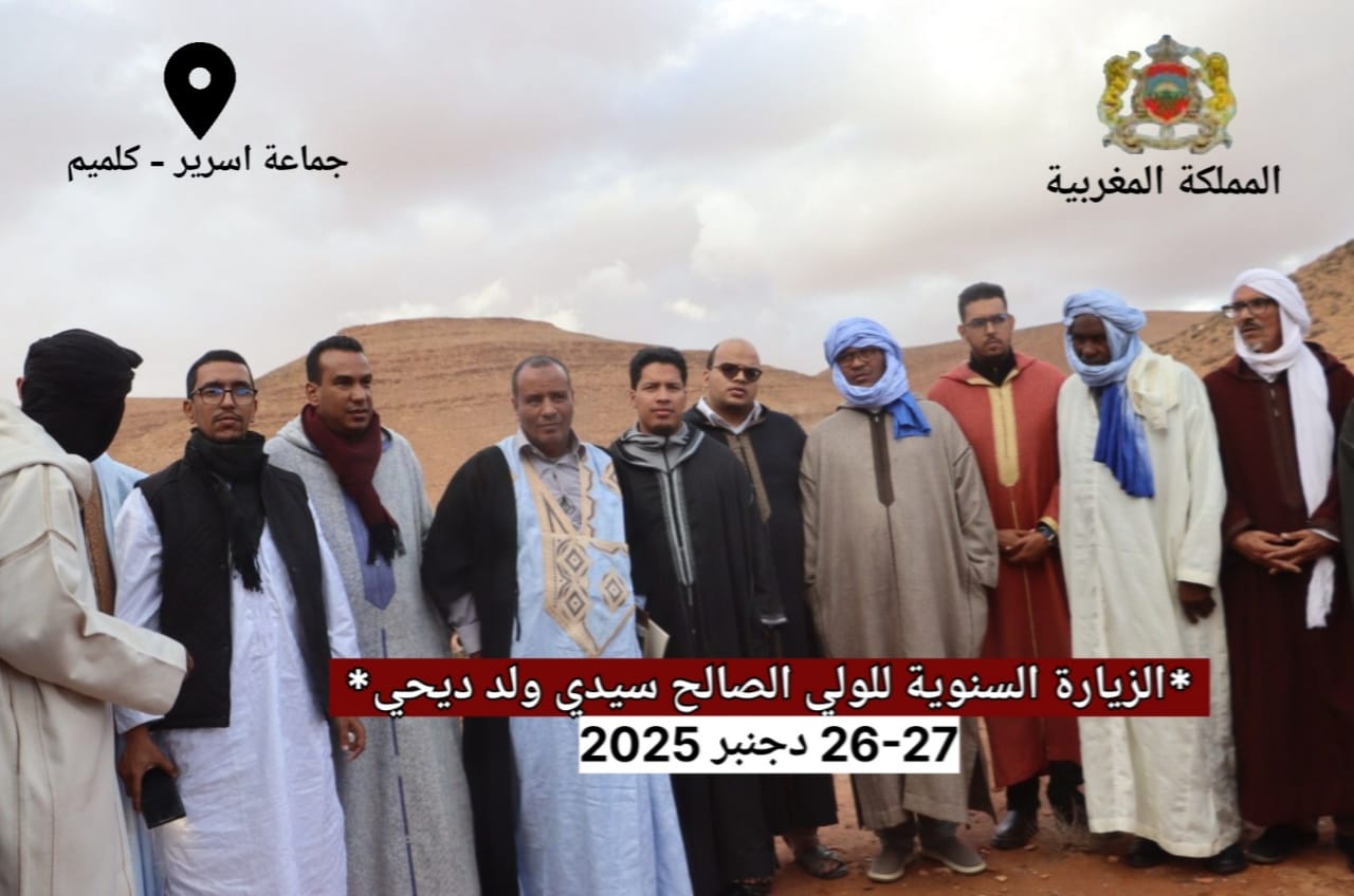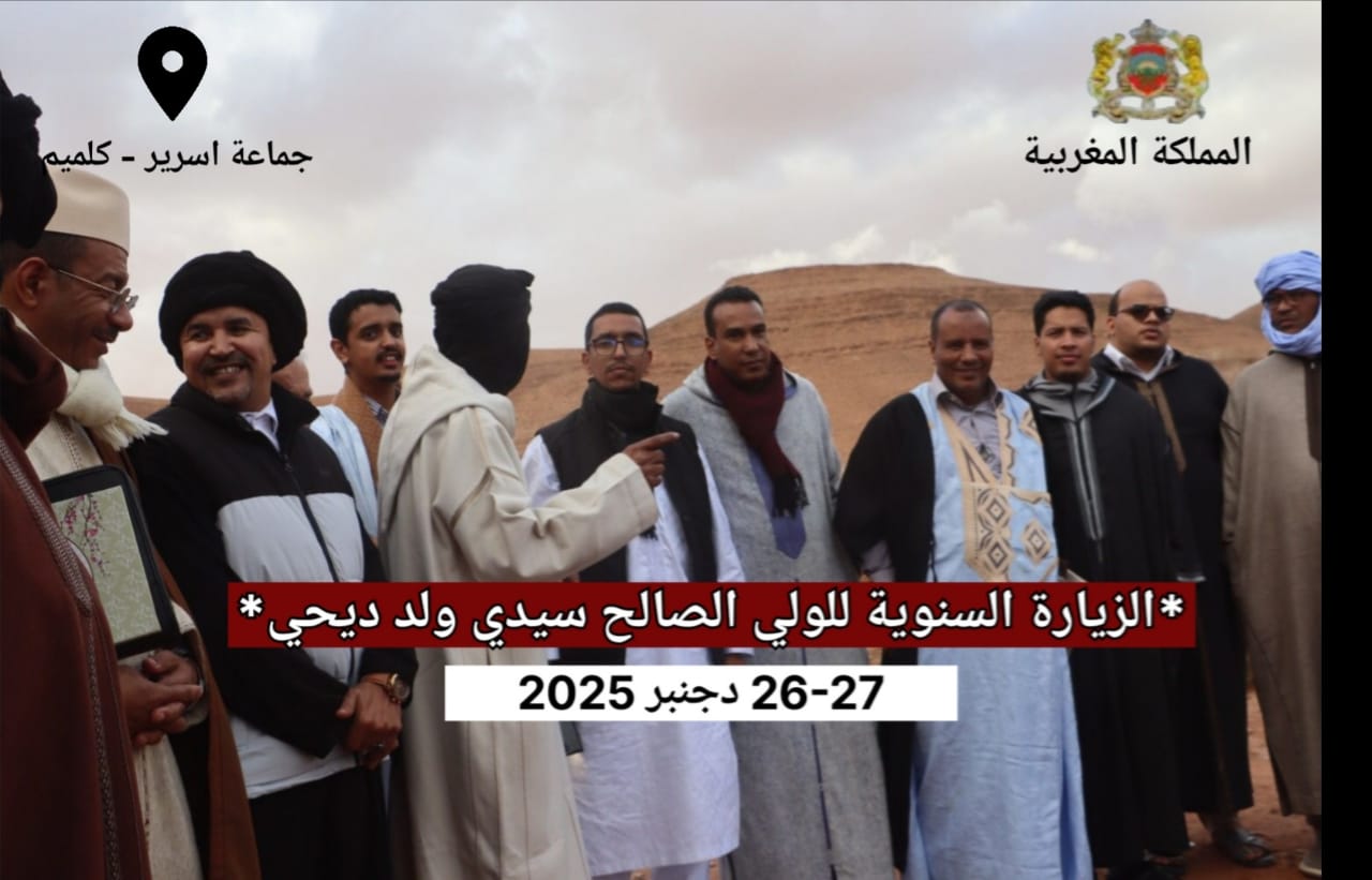 انطلقت فعاليات الموسم الديني للولي   الصالح سيدي محمد الكنتي بن الشيخ ديحي  يومي 26 و27 دجنبر 2025 بمنطقة تيسة، التابعة لجماعة أسرير إقليم كلميم، تحت شعار «الزوايا مركز الإشعاع الروحي وجسر لترسيخ الوحدة الوطنية».